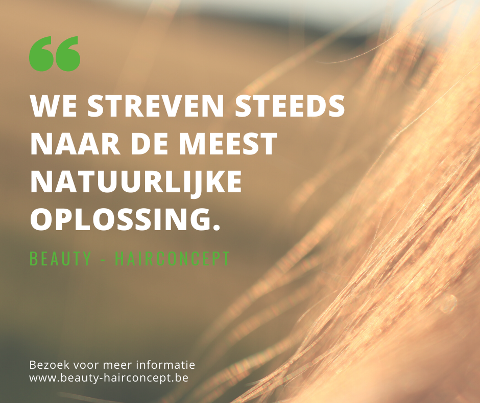 Dankzij onze jarenlange ervaring staat het deskundig team van Beauty-Hairconcept klaar om samen te streven naar meest natuurlijke oplossing.
